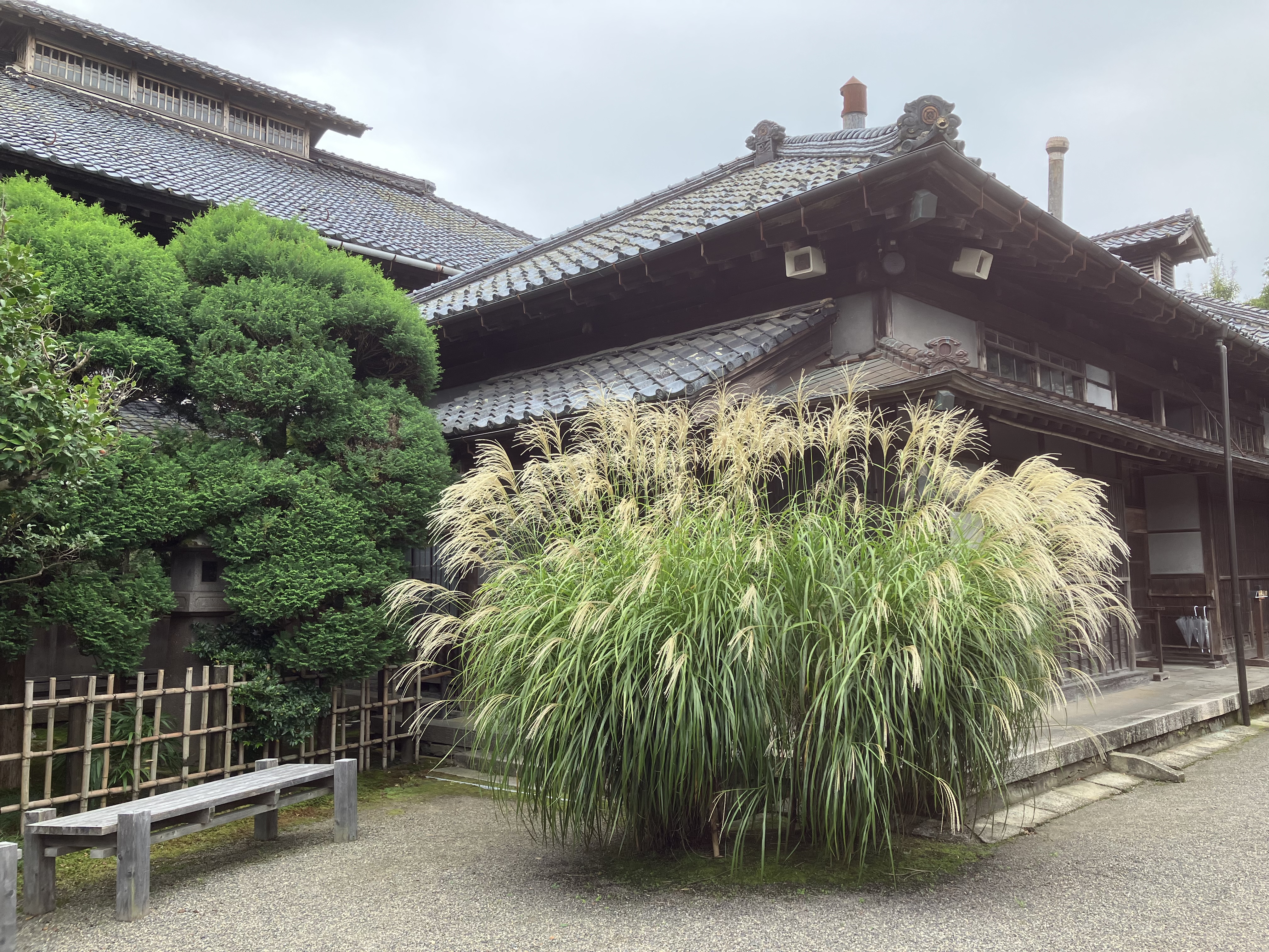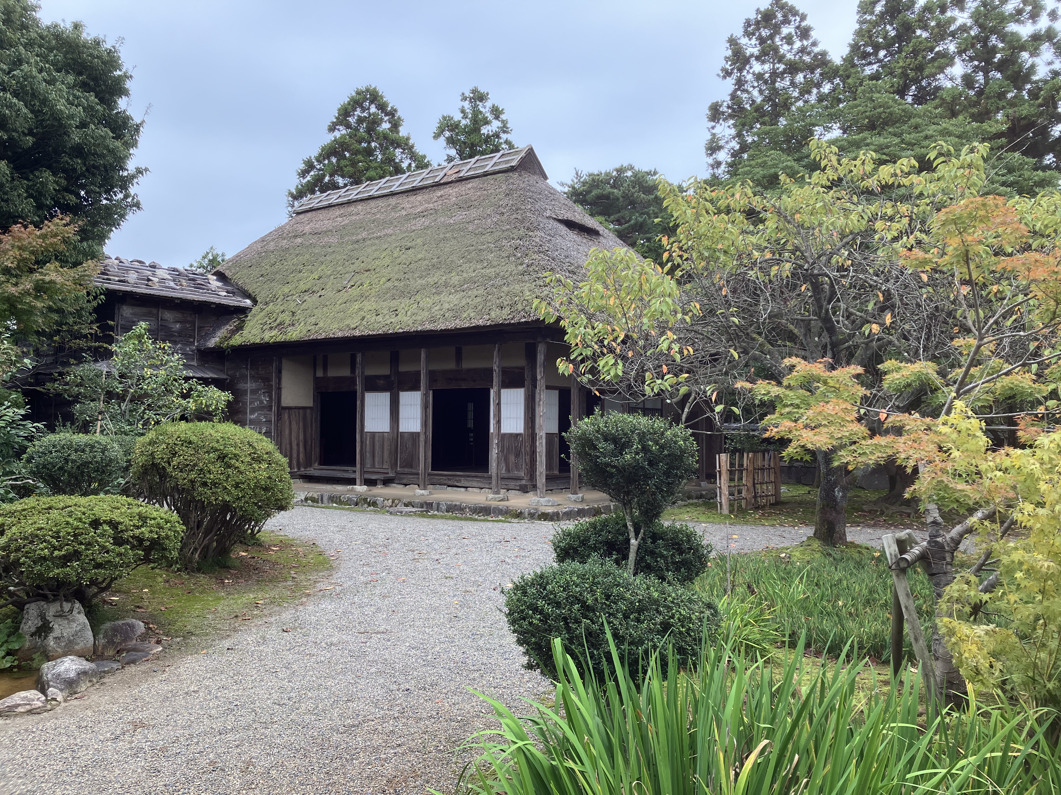 大庭(大広間からの眺め)、前庭、古民家とハス池、三楽亭とその周り