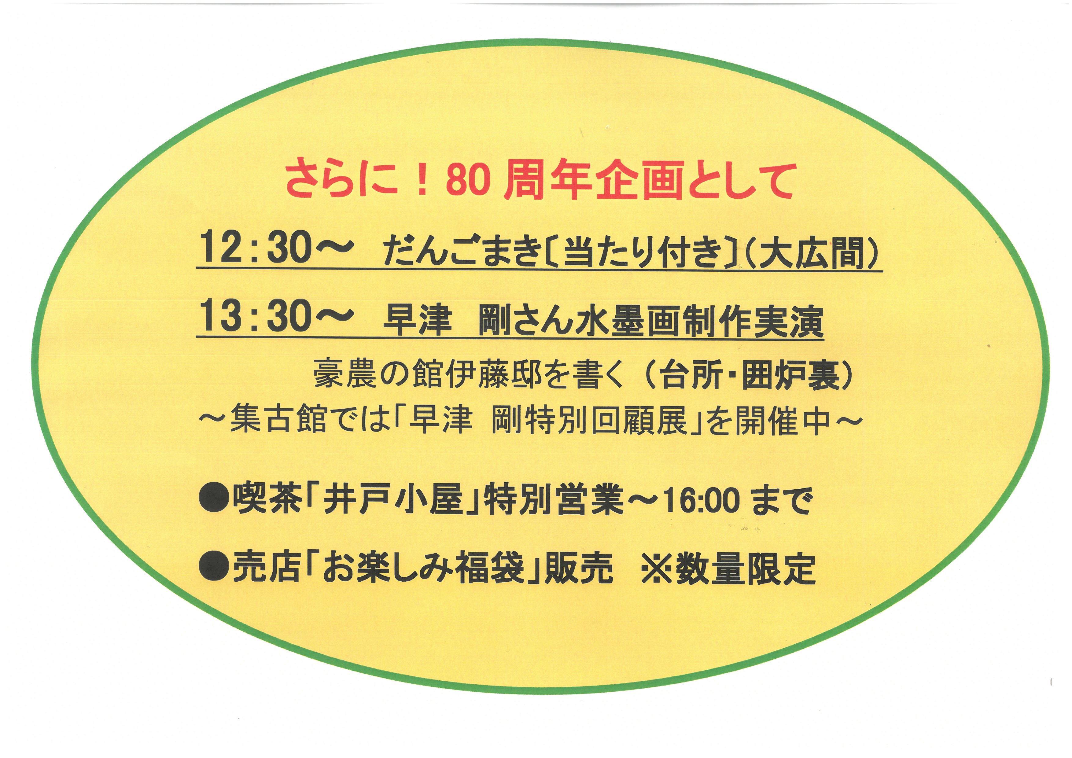 県内外の古民家を描き続けている早津剛さんが、伊藤邸を描く様子を公開いたします。集古館では特別回顧展も行っています。
